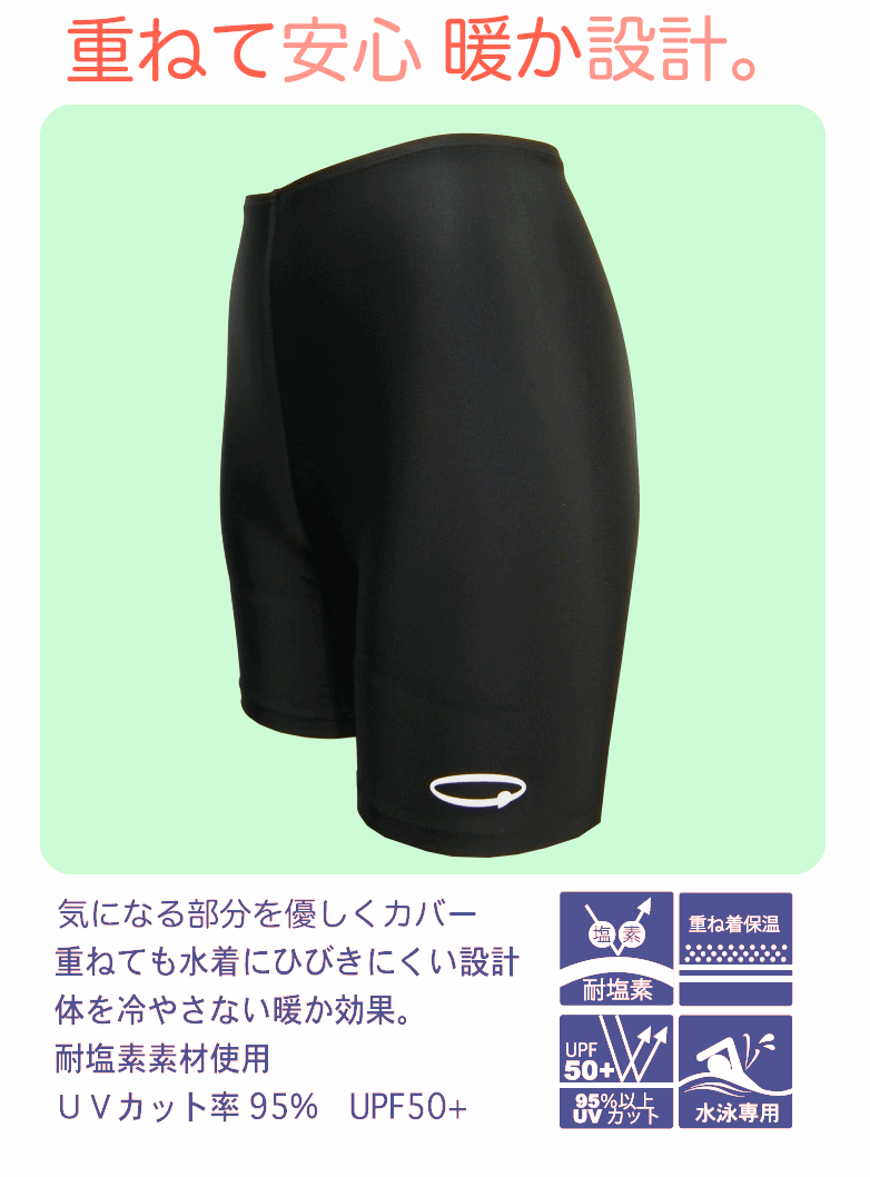 ■ 製造・販売元 ▼株式会社ヒカリスポーツ ■ 素材 ▼ポリエステル80%・ポリウレタン20% ■ 形状特徴 ▼重ね着用スパッツ ・お手持ちのワンピース水着の下に重ね着すれば スパッツタイプに早変わり♪